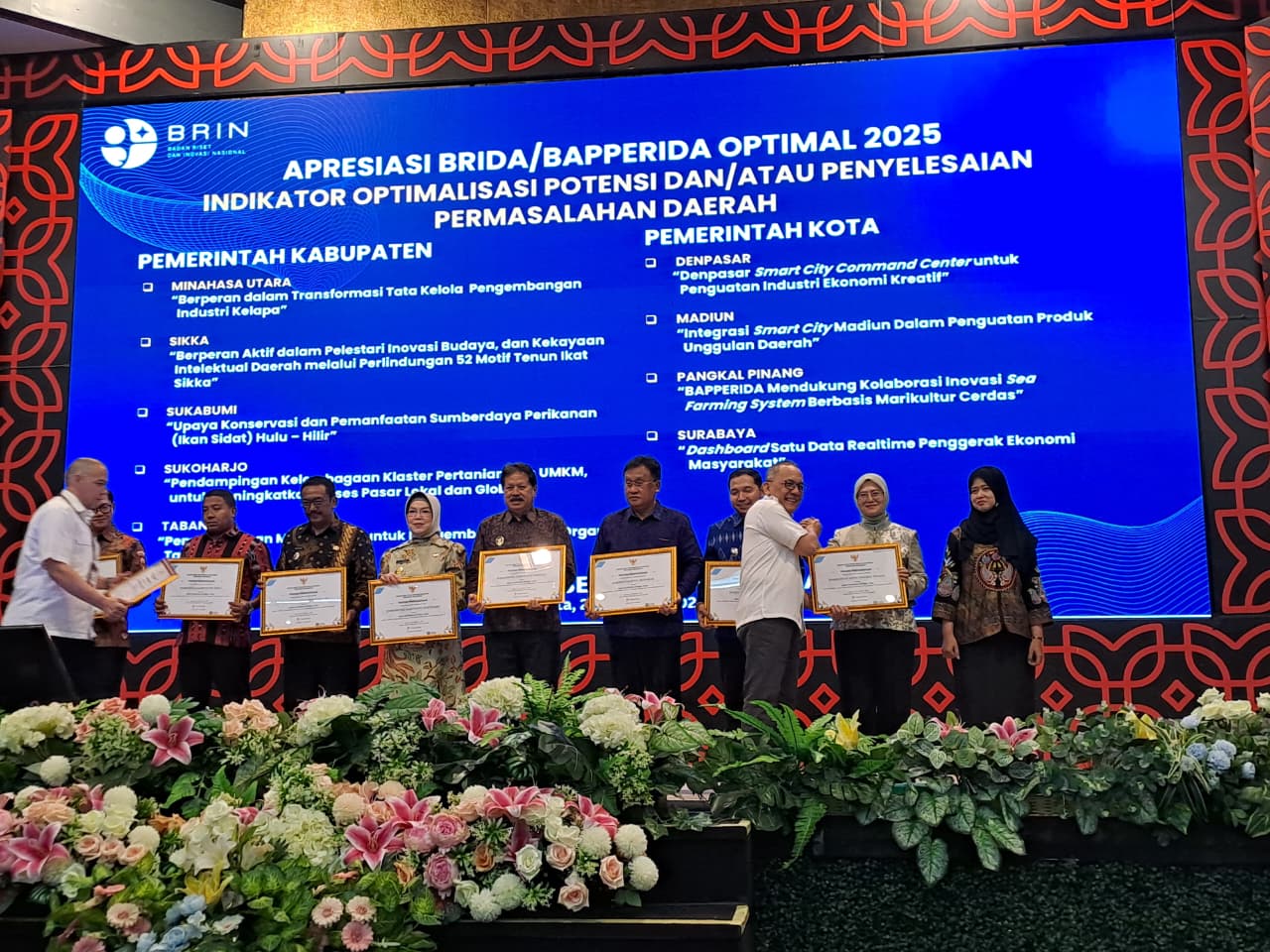 Kegiatan penilaian kinerja BRIDA/BAPPERIDA Tahun 2025 yang digelar BRIN melibatkan lembaga riset dan inovasi daerah dari 24 provinsi, 187 kabupaten, dan 41 kota di seluruh Indonesia. Dari hasil penilaian tersebut, BRIN menetapkan 27 BRIDA/BAPPERIDA terbaik di kategori peran dalam optimalisasi potensi dan penyelesaian masalah daerah, salah satunya Kota Pangkalpinang.