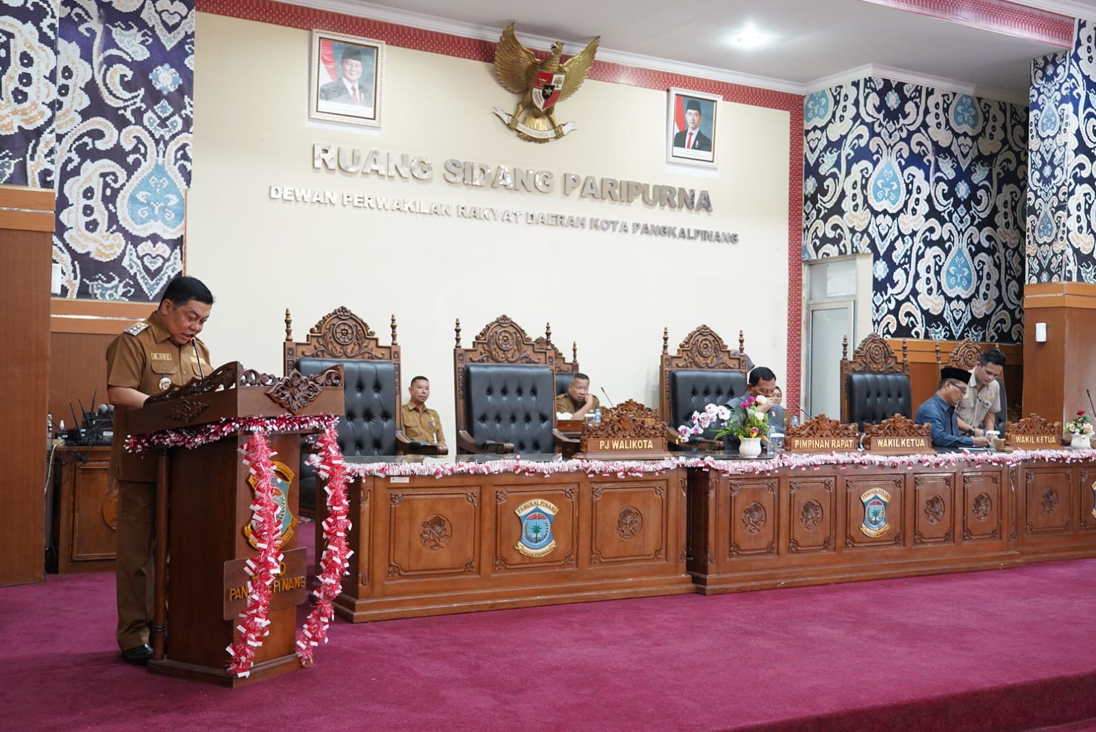 Pj Wali Kota Pangkalpinang, M. Unu Ibnudin, menyampaikan tanggapan terhadap pandangan tujuh fraksi, termasuk Fraksi PDI Perjuangan, Partai Gerindra, dan Partai Golkar.