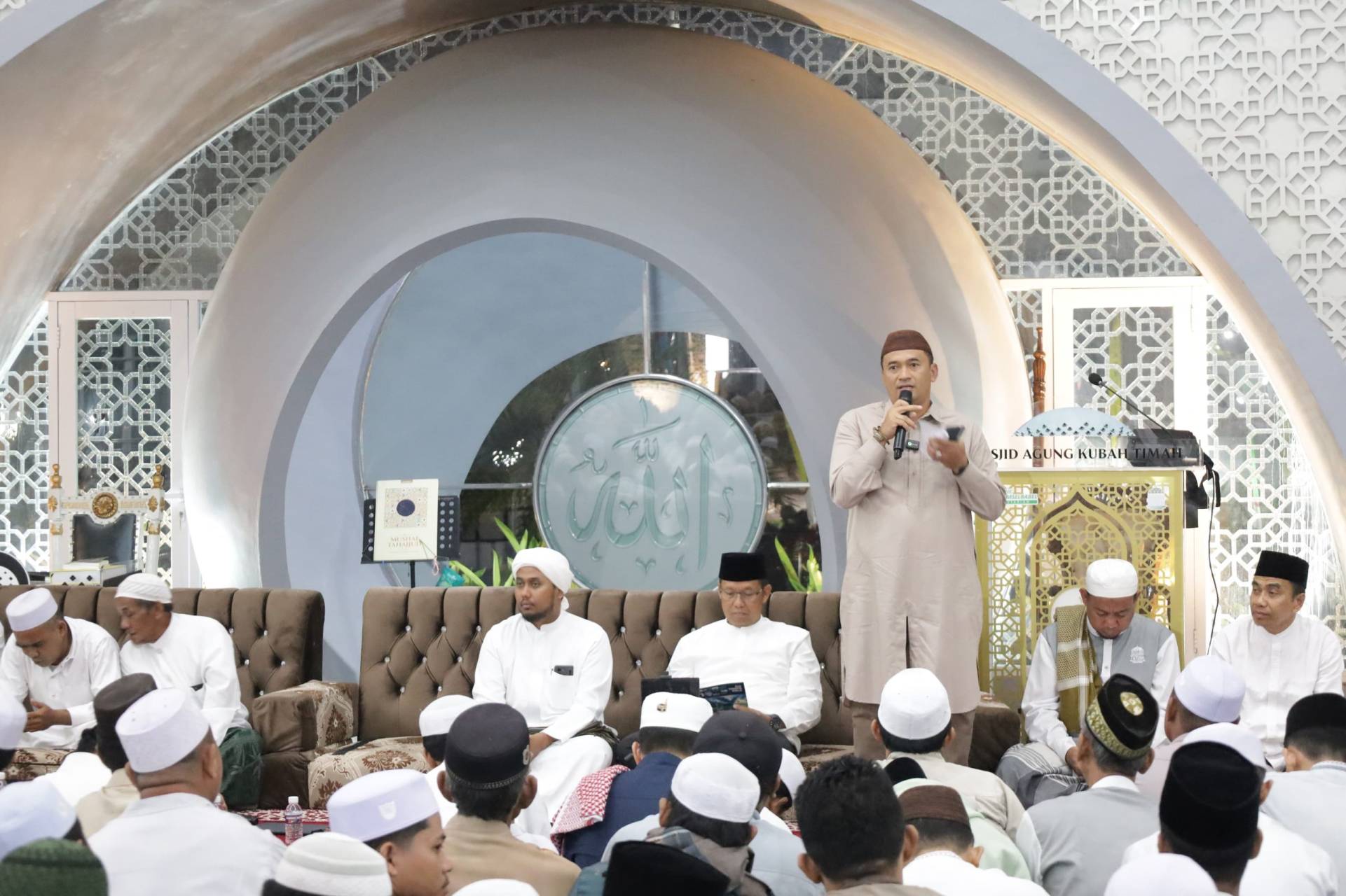 PANGKALPINANG, DISKOMINFO – Tabligh Akbar Maulid Arbain 1446 Hijriah sekaligus doa bersama untuk Pilkada damai berlangsung di Masjis Agung Kubah Timah, Senin (14/10/2024) malam. Acara ini diselenggarakan oleh Badan Pelaksana Masjid Agung Kubah Timah Pangkalpinang dan dihadiri oleh berbagai tokoh penting, termasuk Penjabat (Pj) Wali Kota Pangkalpinang, Budi Utama.